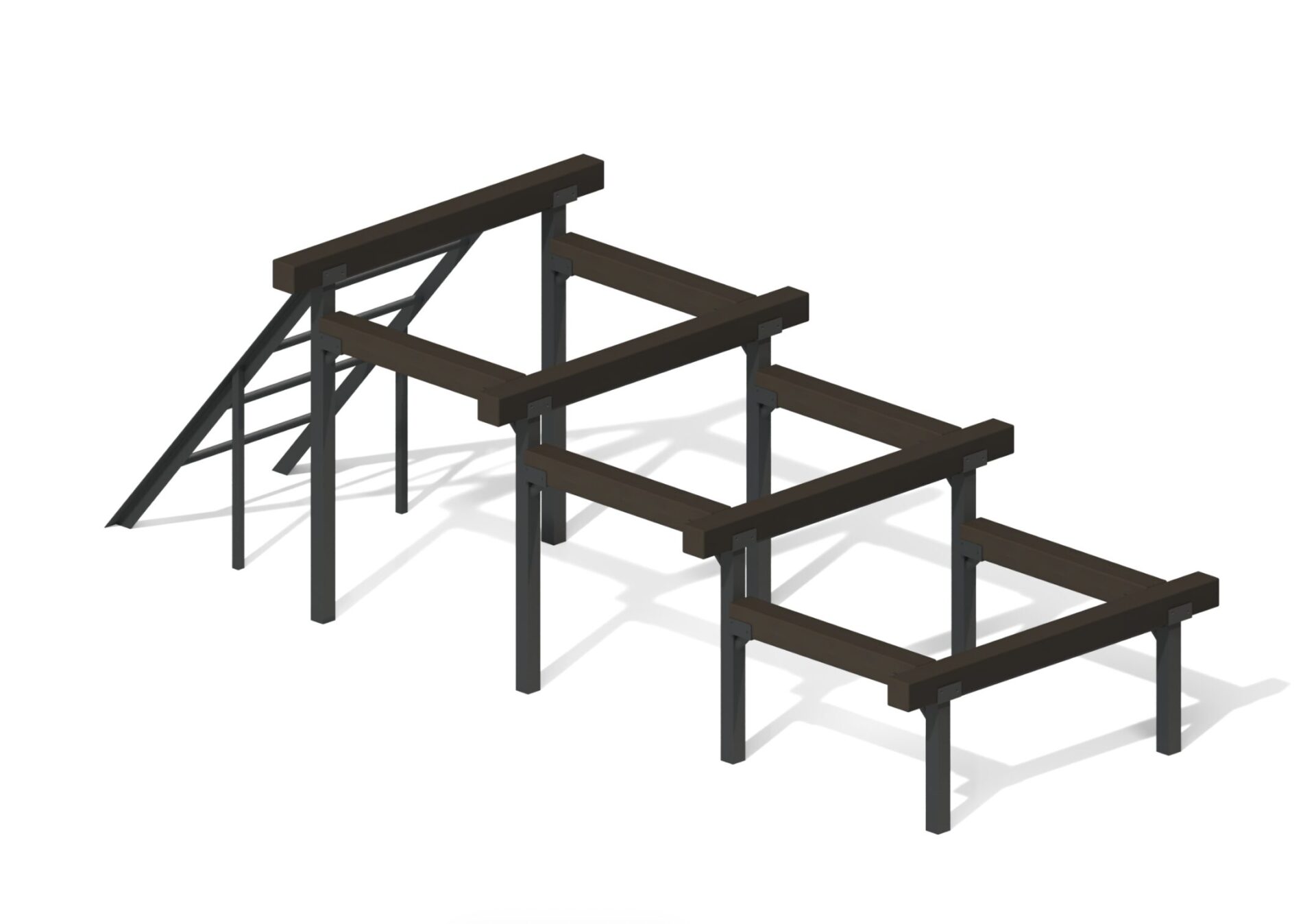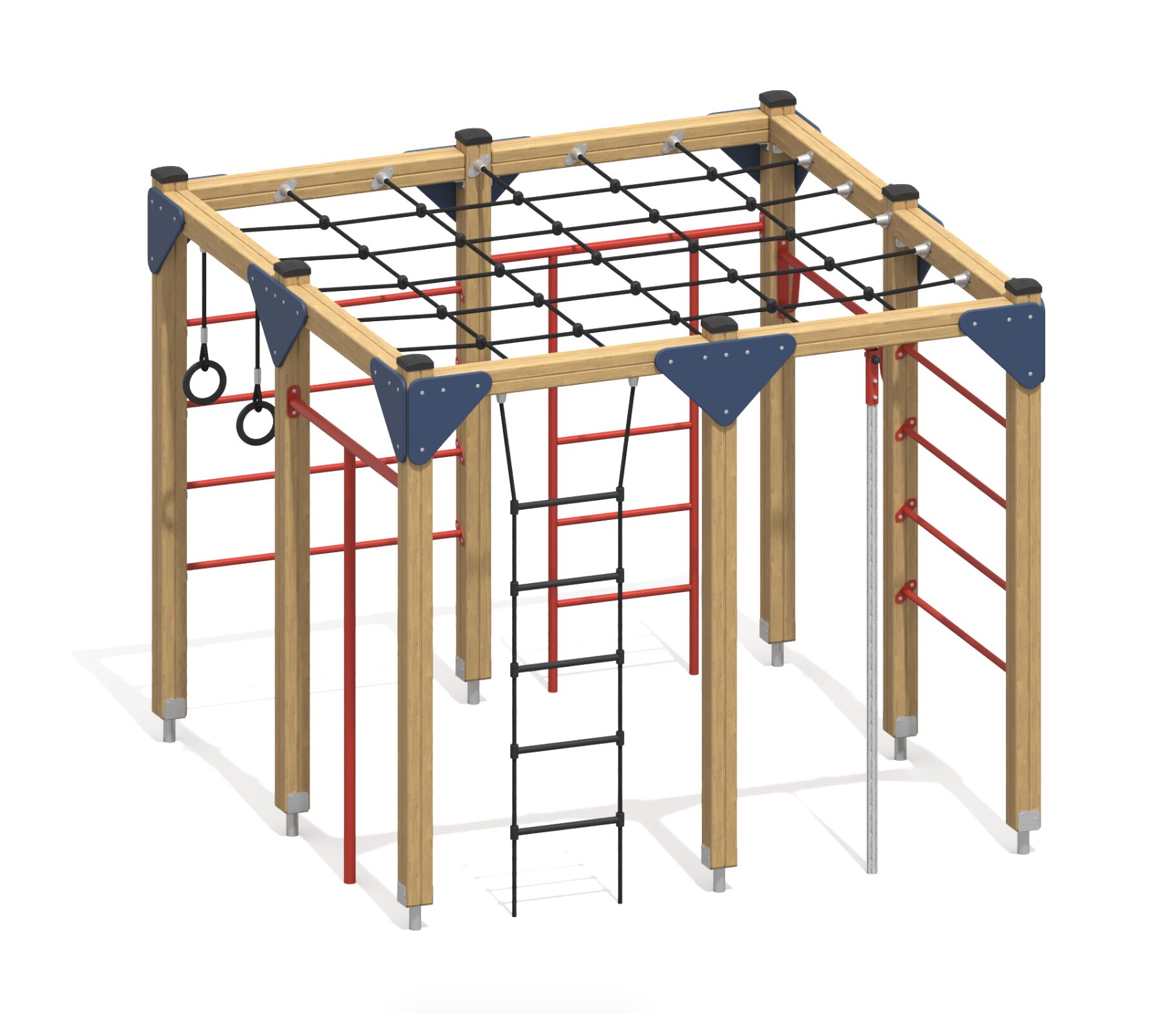 В производстве зон для тренировок мы используем сталь с многослойным полимерно-порошковым покрытием, антивандальный HPL-пластик и клееный брус, обработанный защитными антисептиками и износостойкими маслами. Безопасность — приоритет при создании каждого элемента. Высота уличного оборудования снарядов для детей рассчитана с учетом возрастных групп, а зоны приземления оборудуются ударопоглощающим бесшовным покрытием из резиновой или каучуковой (EPDM) крошки.